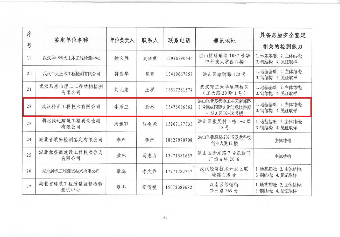 我公司繼續入選2019年武漢市房屋安全鑒定單位名錄